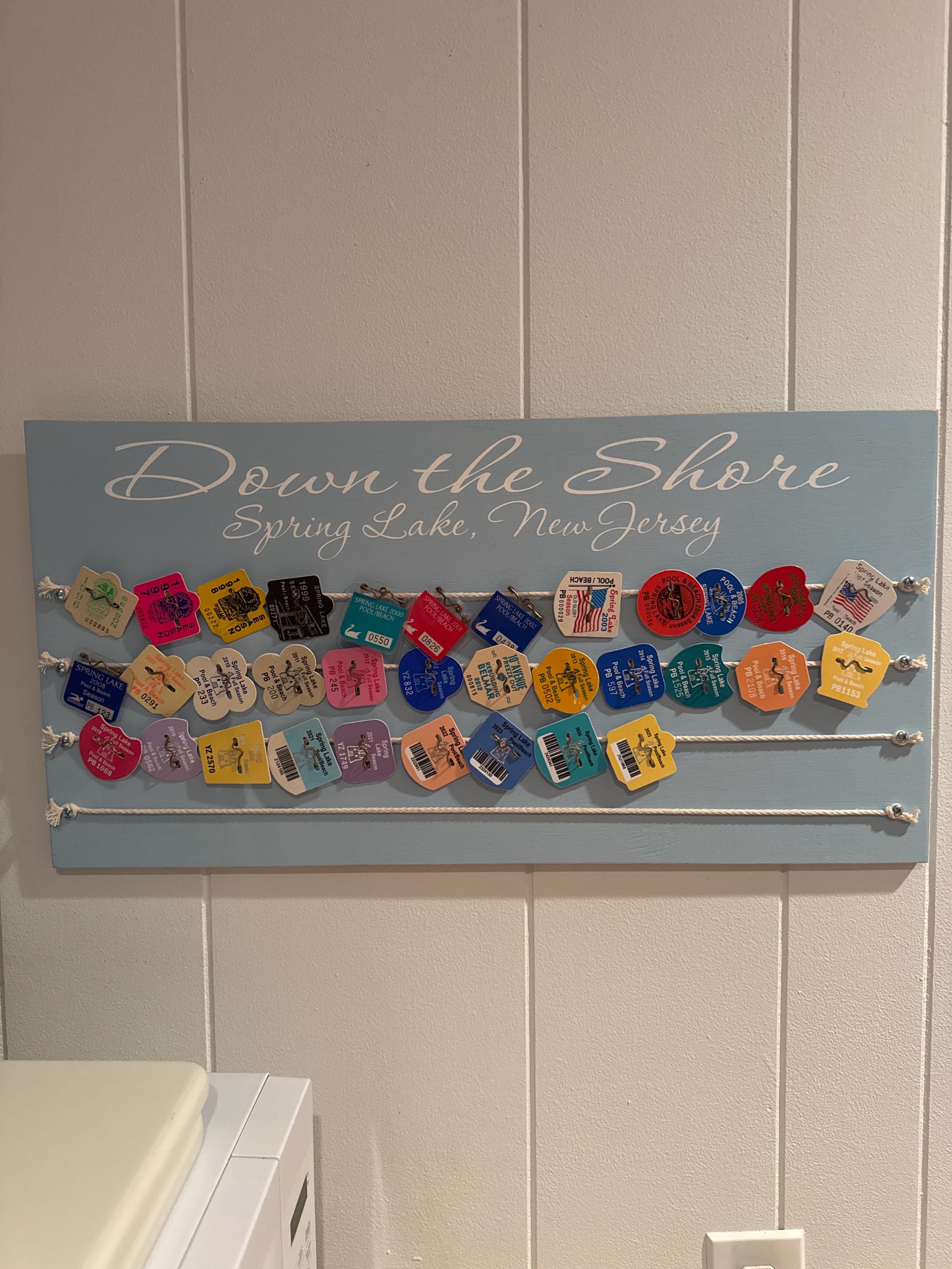 This beach badge display sign is the perfect way to display those memories from days spent at the shore! This beach tag holder can be done with your own custom wording - you can provide me with the town name for your sign in the personalization section when ordering or you may choose your own customized phrase for your tag holder. If you want the coordinates please either put them as you would like them in the personalization section or I can look them up for you.