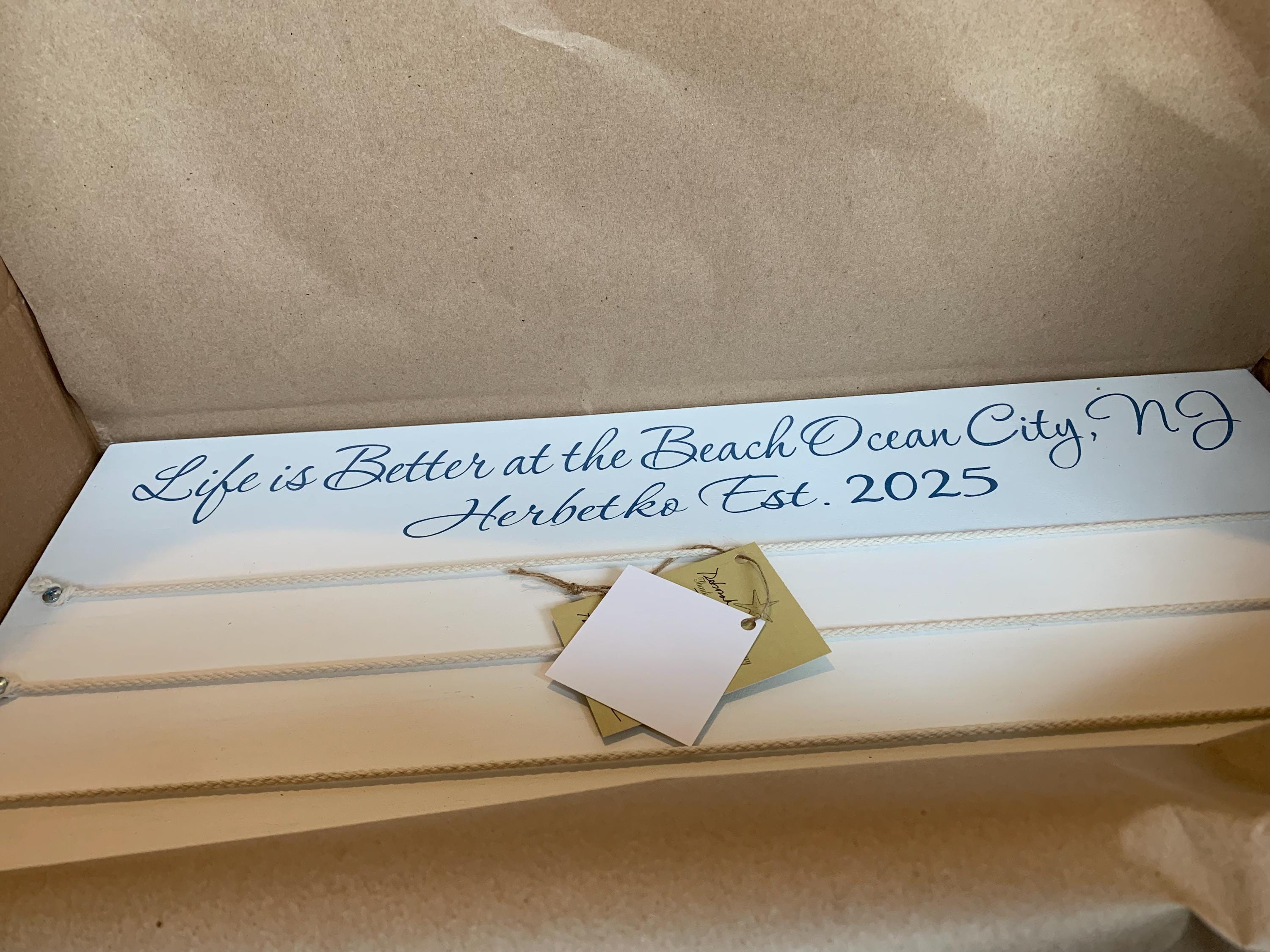 Great gift idea for the holidays, Valentine's Day or any other special occasion for that beach lover in your life! Add your New Jersey beach town to any sign: Shark River Hills, Belford, Highlands, Keansburg, Sea Bright, Normandy Beach, Sandy Hook, Atlantic Highlands, Long Branch, Asbury Park, Avon by the Sea, Bradley Beach, Ocean Grove, Belmar, Spring Lake, Sea Girt, Manasquan, Point Pleasant Beach, Brick, Bay Head, Mantoloking, Lavallette, Seaside Heights, Brigantine Beach, Margate, Somers Point, Seaside, Wildwood, LBI, Seaside Park, Island Beach State Park, Barnegat Light, Harvey Cedars, Loveladies, Surf City, Beach Haven, Ship Bottom, Long Beach Island, Brigantine, Atlantic City, Ventnor, Margate, Longport, Ocean City, Sea Isle City, Avalon, Stone Harbor, Wildwood or Cape May.