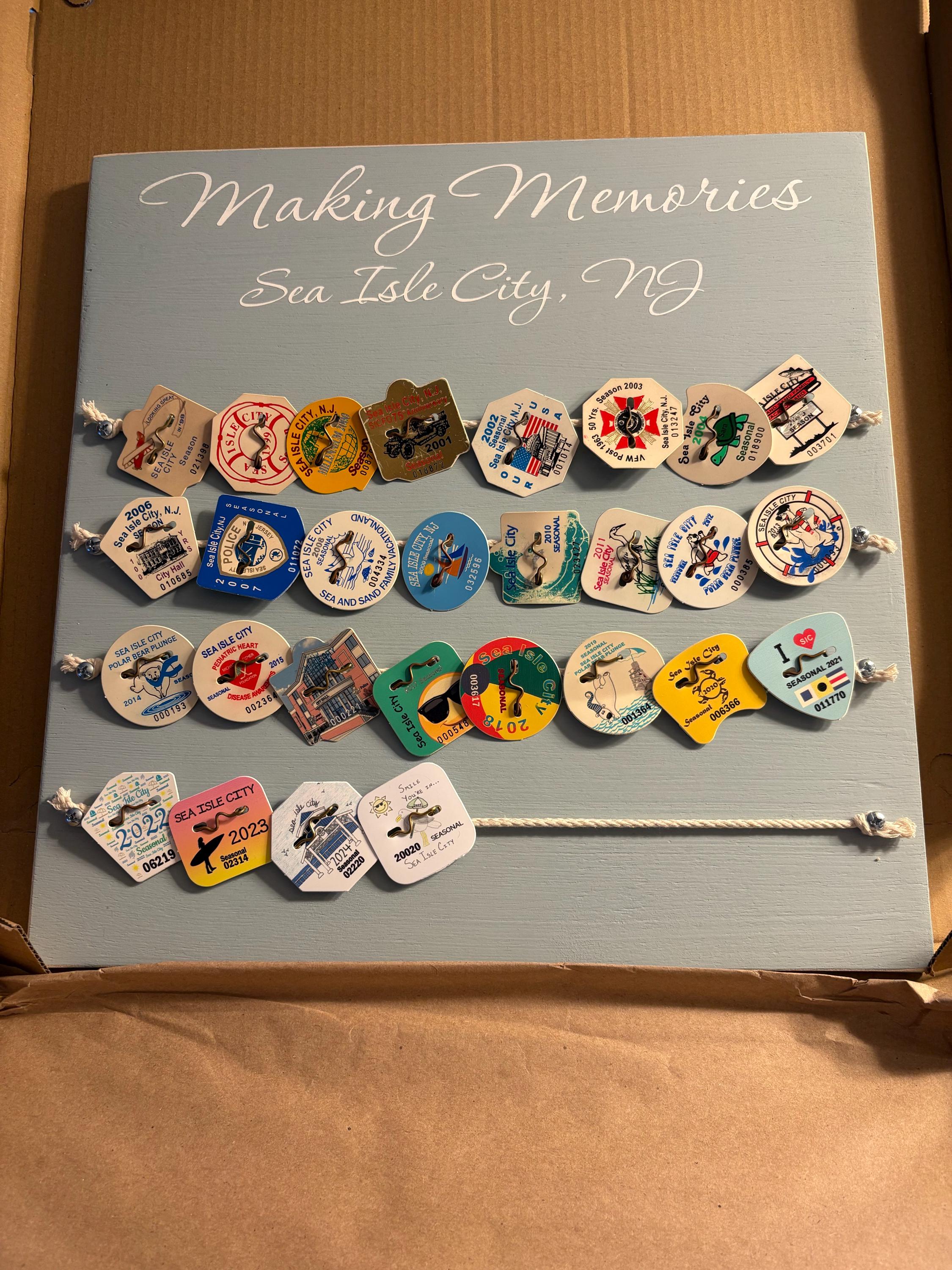 Beach Badge Holder Sign, Badge Collection Display, Season Badge, Jersey Shore Town, Cause Down The Shore Everything's Alright, Beach Tags