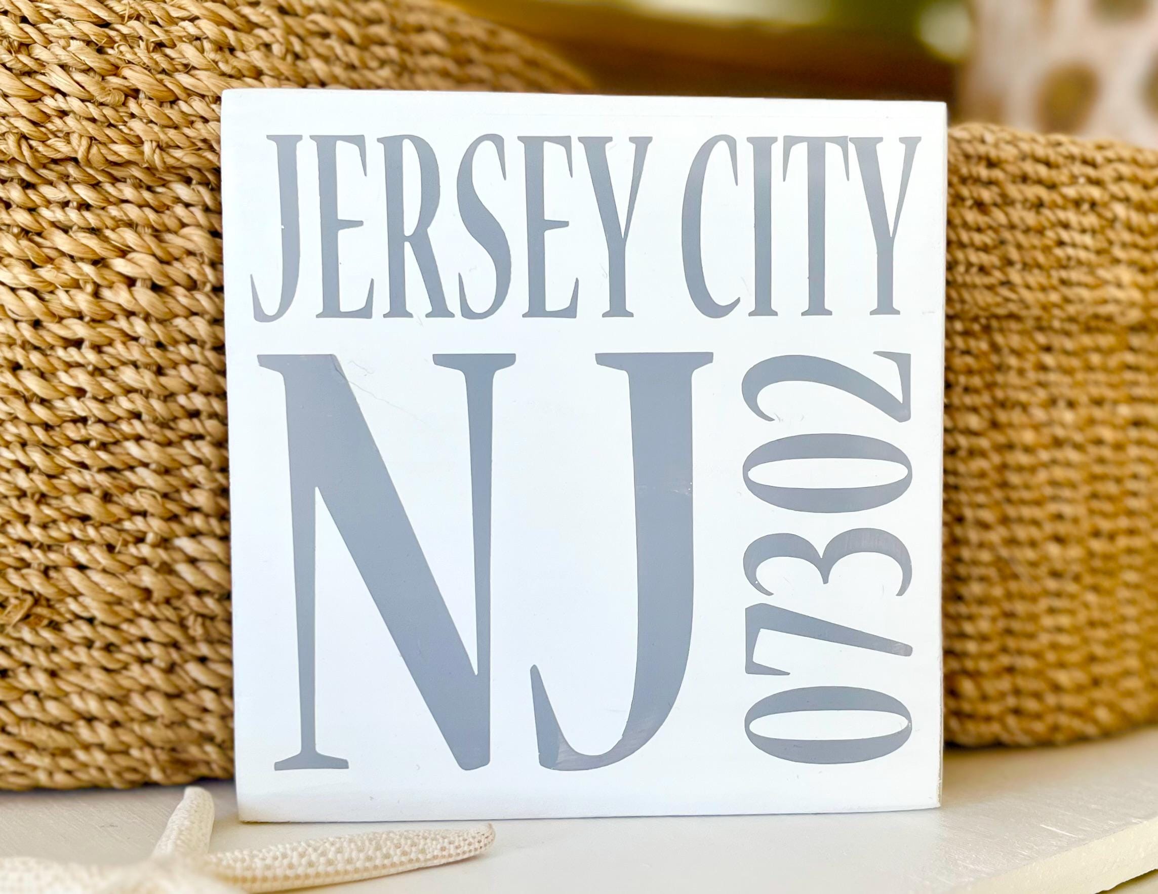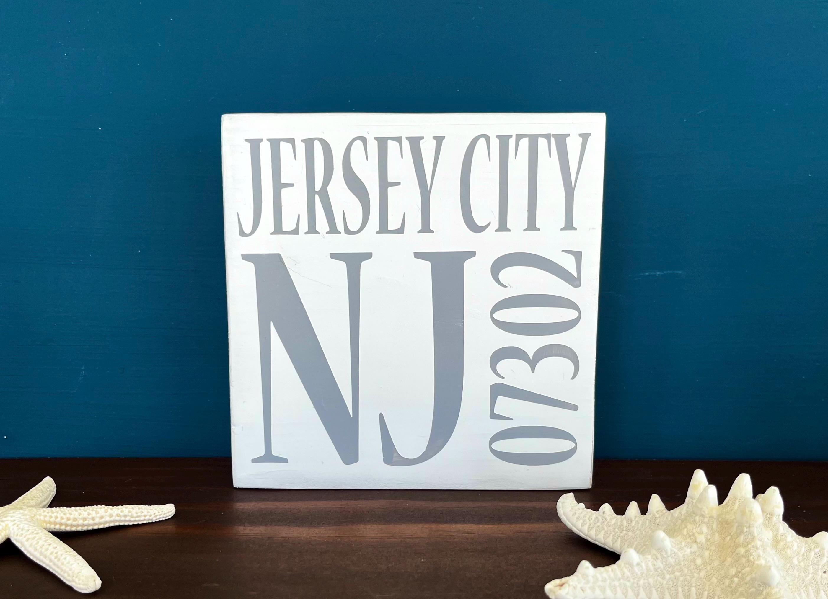 This custom state, town and zip code sign can be personalized with any state, town and zip code. Each board is white and the lettering will be done in the custom color of your choice. The lettering will be sized to fit the space so more letters will result in a smaller and compacted appearance.