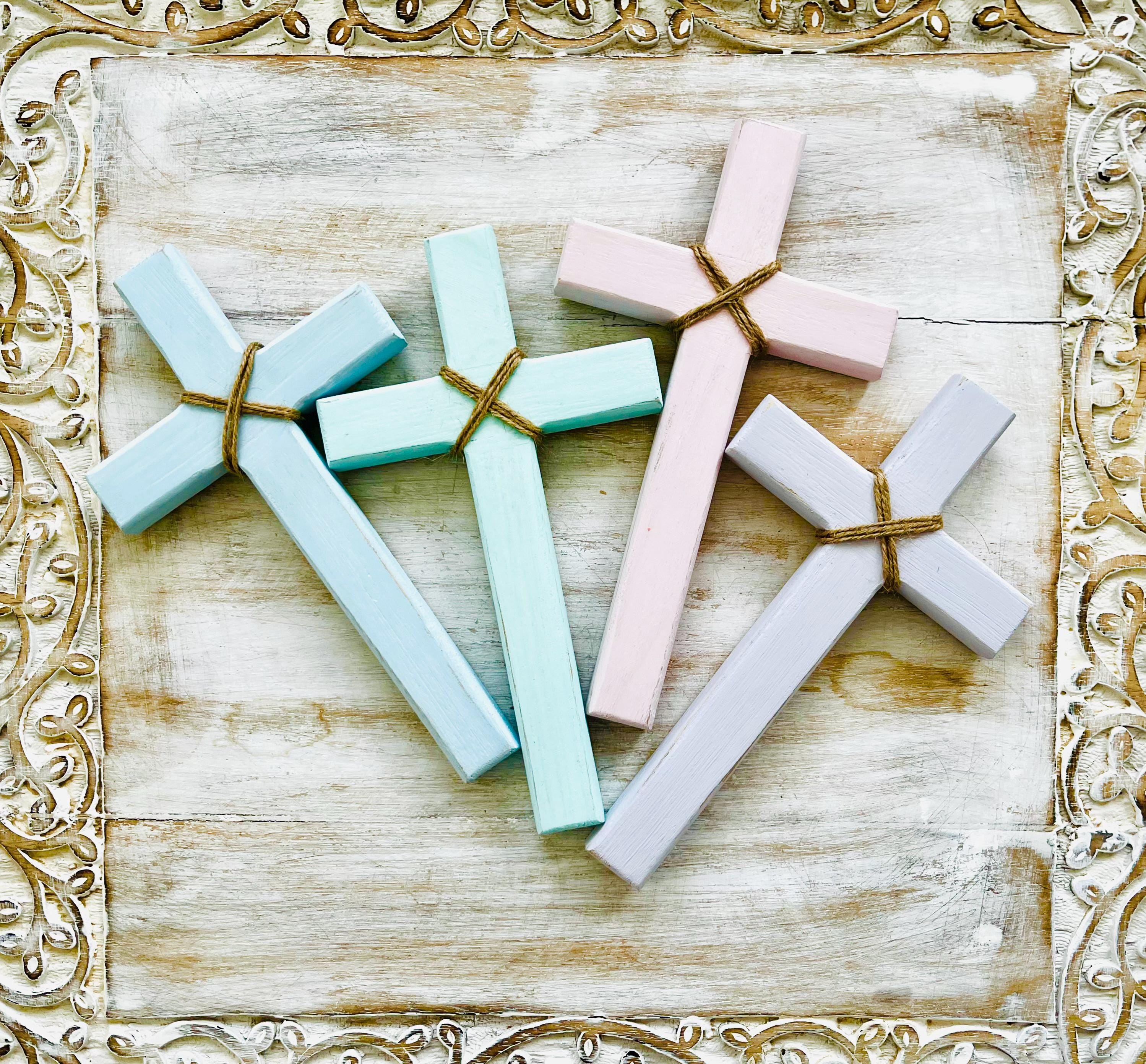 These wood Easter crosses make beautiful gifts to enclose in an Easter basket or for your Easter decor - they are simple and sweet and perfect for celebrating not just the holidays, but also a new baby, a Baptism, a new home, Christening, First Holy Communion, Confirmation, or a Wedding. A beautiful cross that is a thoughtful gift on it's own or lovely pared with something else.